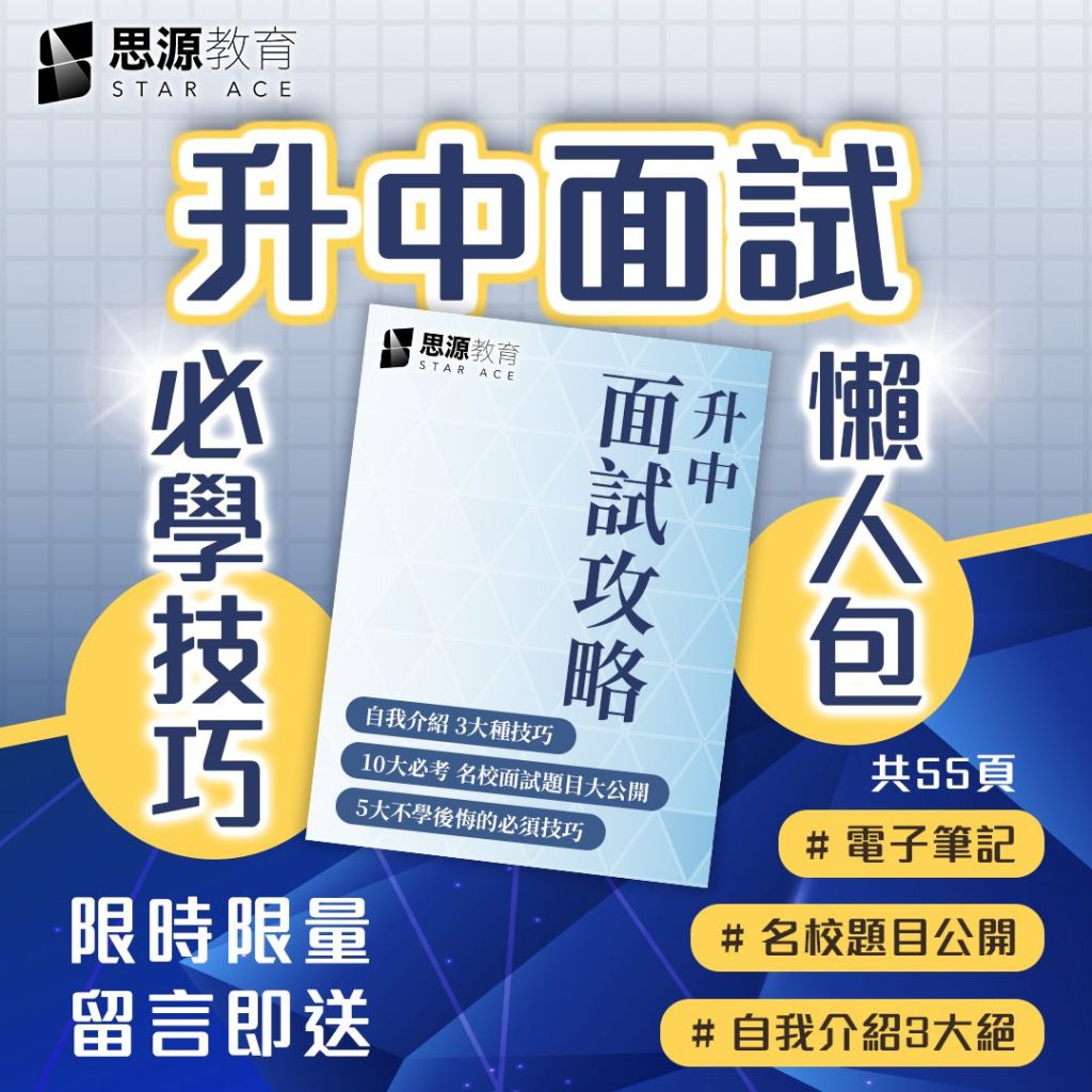 升中面試準備班主要強化學生英文面試表達能力,課程教授獨家個人及小組英文面試技巧,並改善英語發音、語速及語調,助小朋友能輕鬆以最佳狀態應付升中面試。同時導師會發掘小朋友多方面的潛能,貼合校方最想看到的表現,最大化入讀心儀名校的機會!