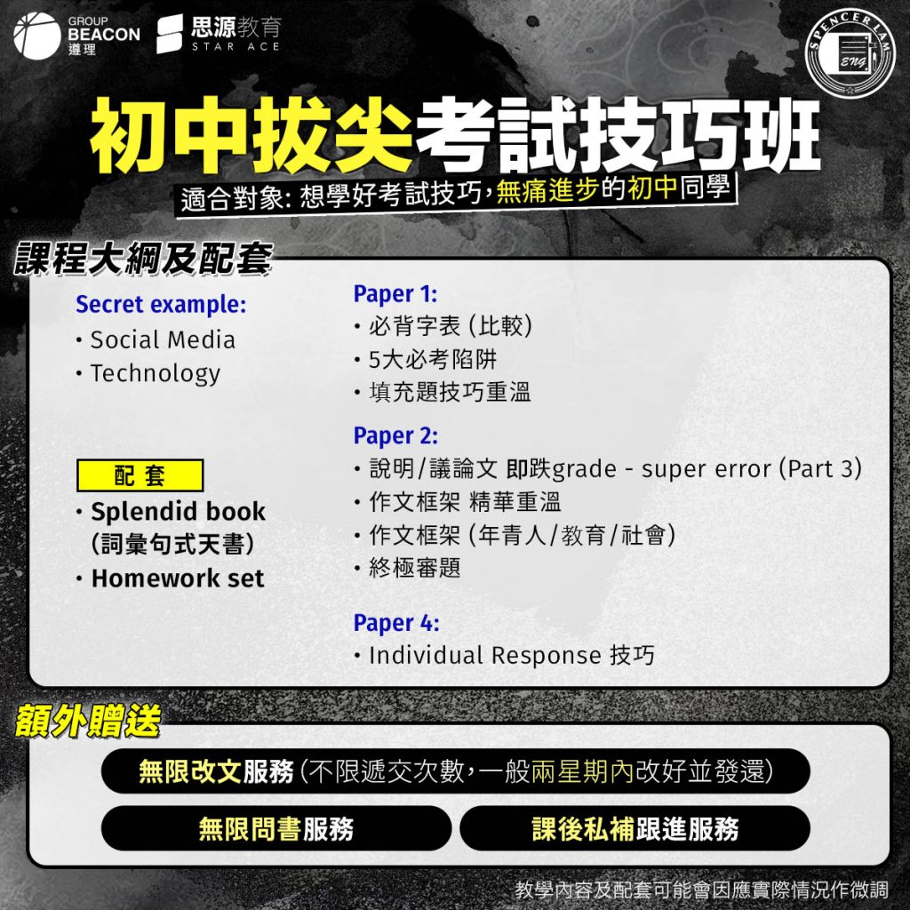 思源教育課程 年級篩選 中三 中一 中二 中五 中六 中四 小學 科目篩選 IELTS雅思 英文 All 選擇類別 PTE 精讀衝刺課程 IELTS 16 HOURS INTENSIVE S1-S6 英文暑期特訓課程 小五小六英文呈分試特訓班 Phonics 親子拼音班 入讀名校 – 升中面試班 30小時IELTS速成面授班 16小時IELTS線上精讀課程 IELTS雅思7分保證課程 初中四卷考試技巧班$1,250.00 16小時精讀課程$1,250.00 30小時面授速成課程$1,250.00 英文文法急救班$1,250.00 一鳴驚人英文寫作班$1,250.00 DSE Level 3 補底保證班$1,250.00 – $1,600.00 英文皇牌考試技巧班$1,250.00 – $1,600.00